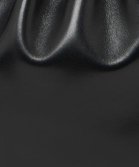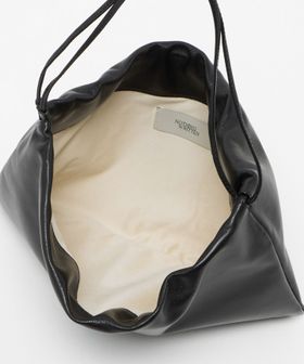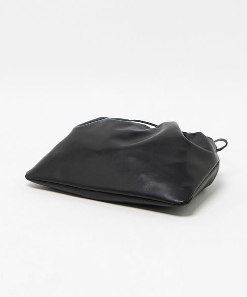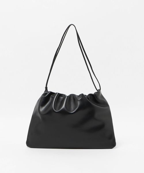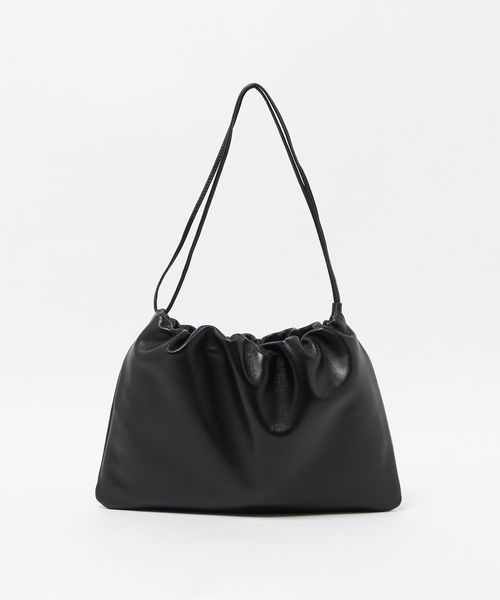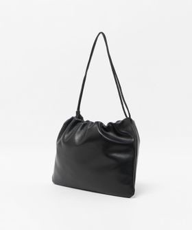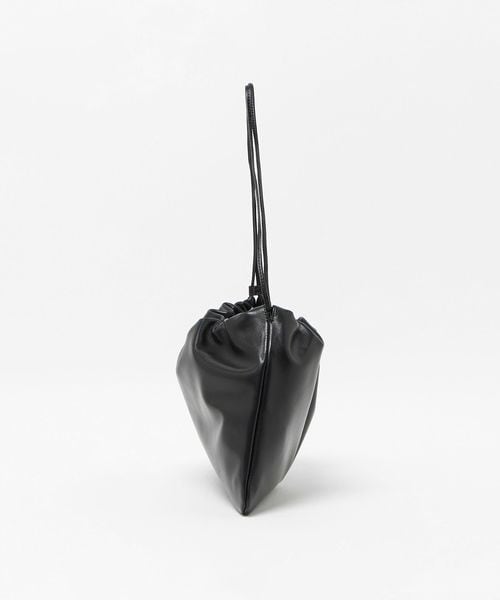 クリーンでミニマルなデザインが魅力の巾着型ショルダーバッグです。