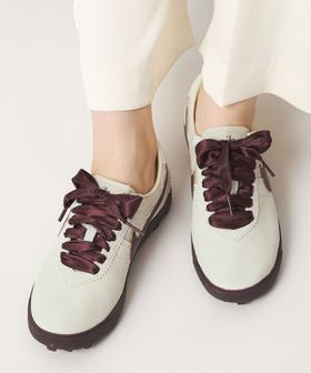 シンプルでありながら、カラーや素材のコンビが足元にアクセントをプラスします。