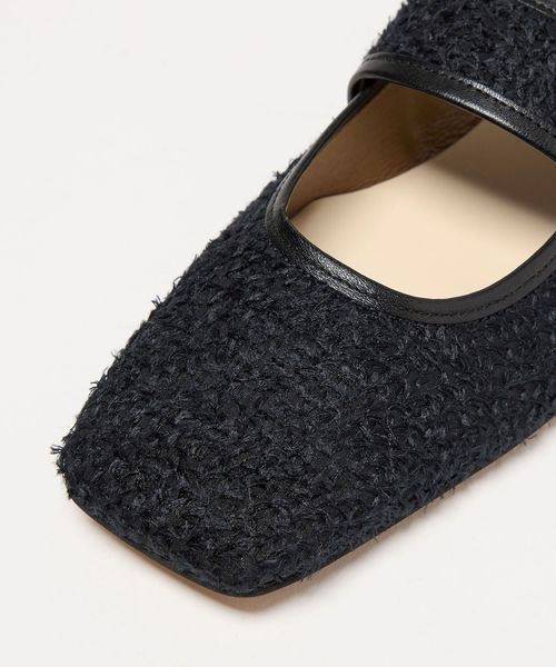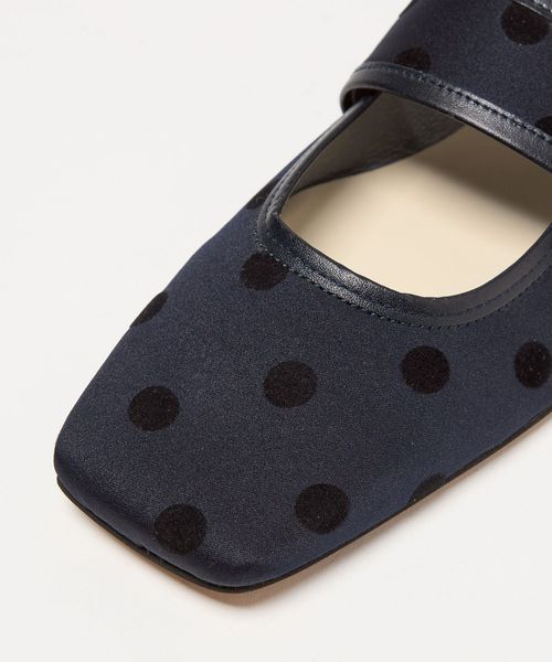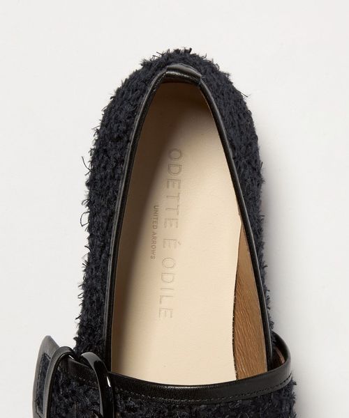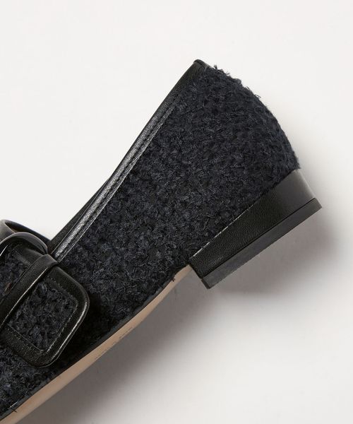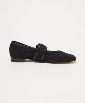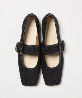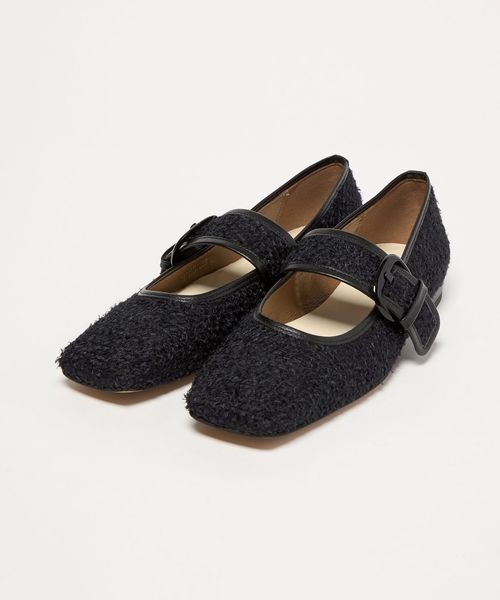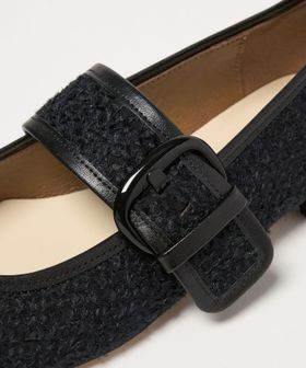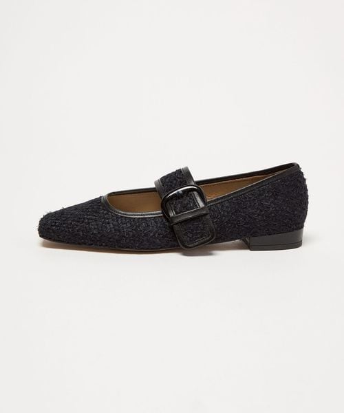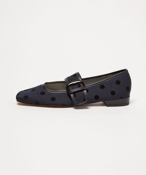 幅広めのスクエアトゥに、存在感のあるベルトデザインを合わせたメリージェーンフラット。