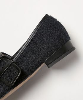 大きめのバックルがアクセントをプラスするフラットシューズ