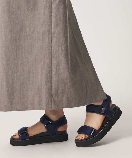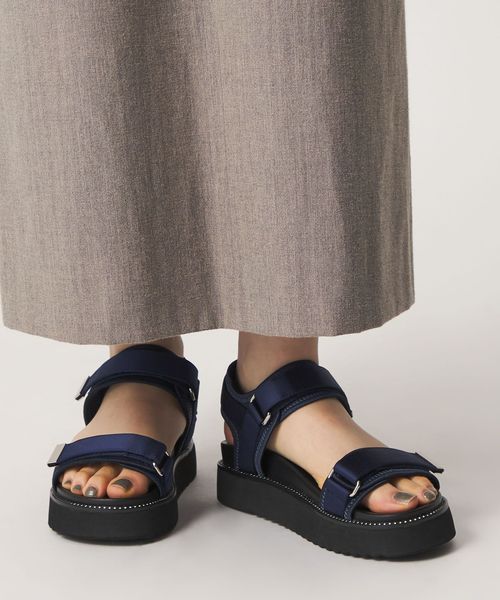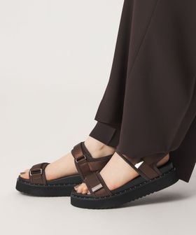 ベルトにはツヤ感のある素材を使用し、きれいめに履けるベルクロサンダルです。