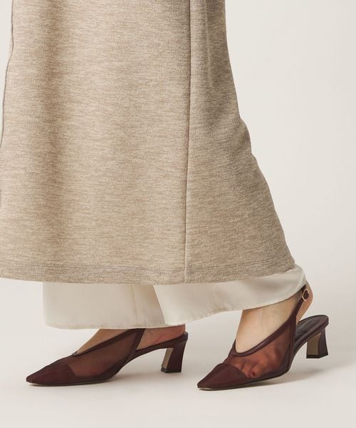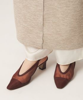 ミュールを履いているようなシャープなシルエットに、華奢なバックベルトでレッグラインにアクセントをプラス。