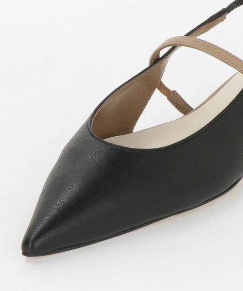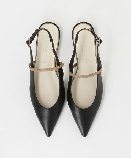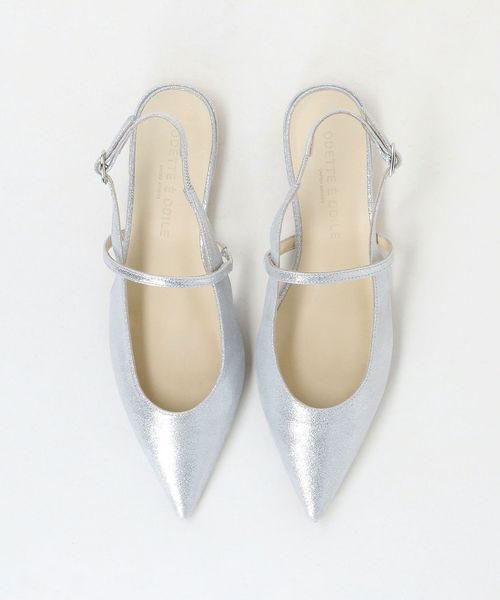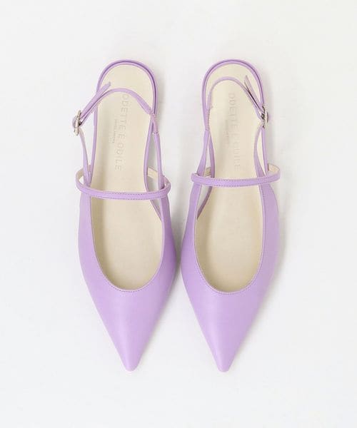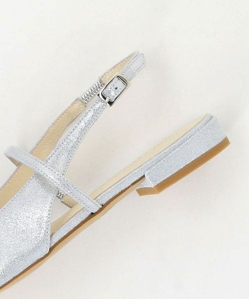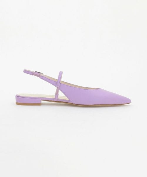 シャープなポインテッドトゥで足元をすっきりと見せるフラットシューズ。