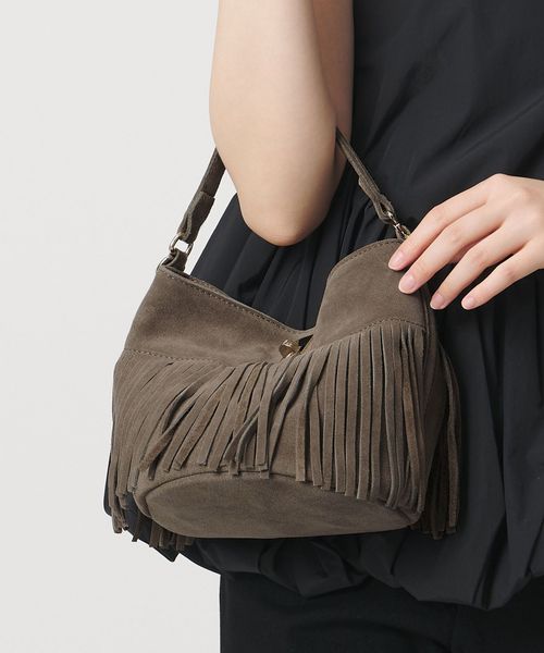 トレンド要素でもあるフリンジが全体にデザインされたワンハンドルのバッグです。