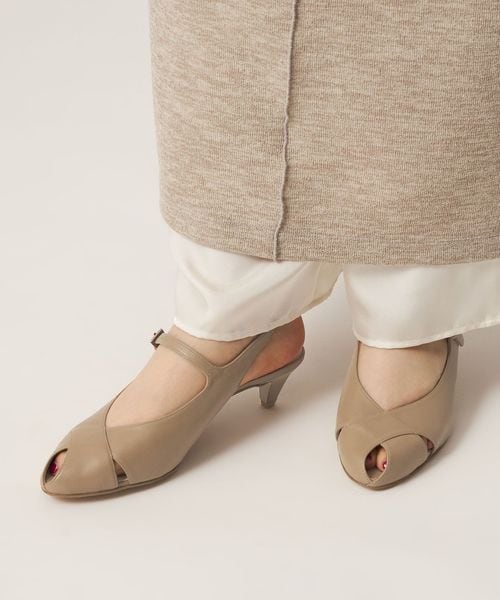 クロスオープントゥ バックベルト パンプス40↑