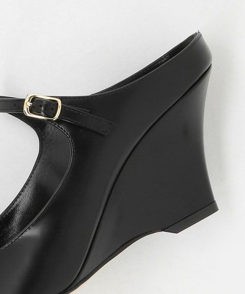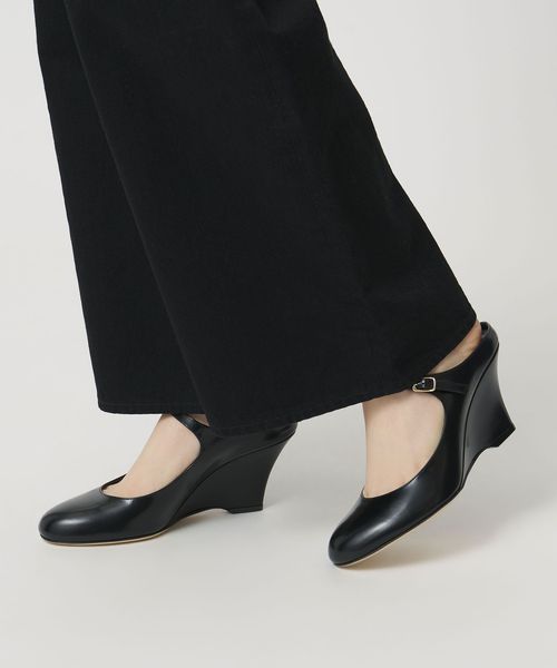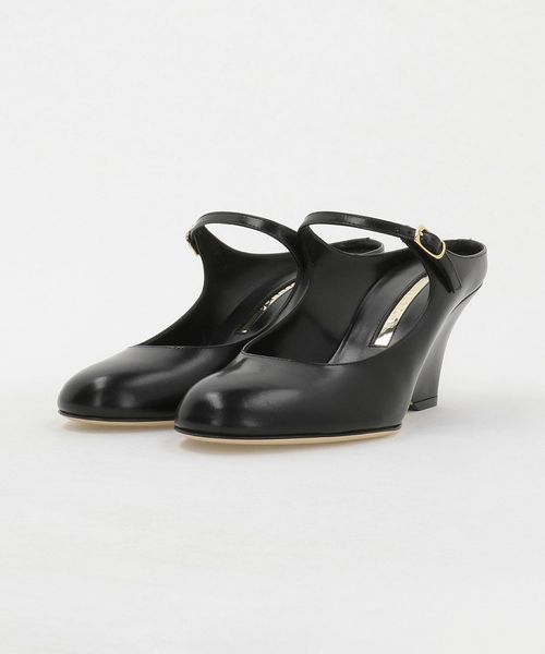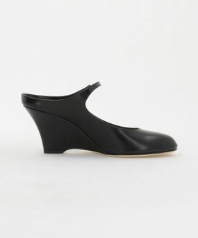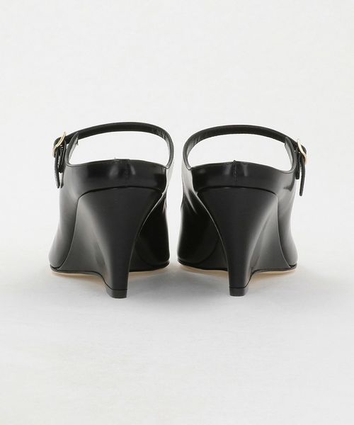 端正なフォルムのウェッジソールが目をひくミュールパンプス。
