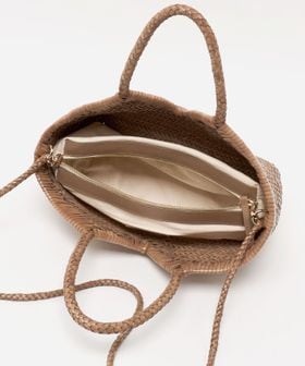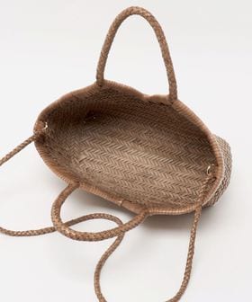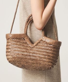 職人の手仕事でつくられたバッグは縫い目がなく、一点一点結びながら織り上げられているのが特徴です。