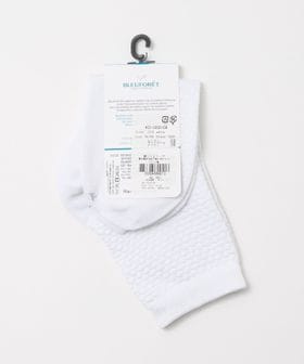 ハチの巣のような六角形が連なる立体的な編み柄が印象的なソックス。