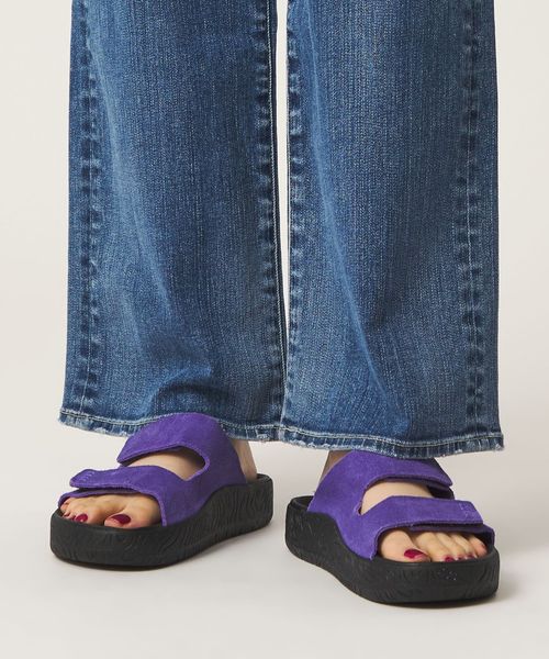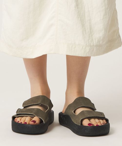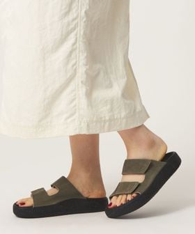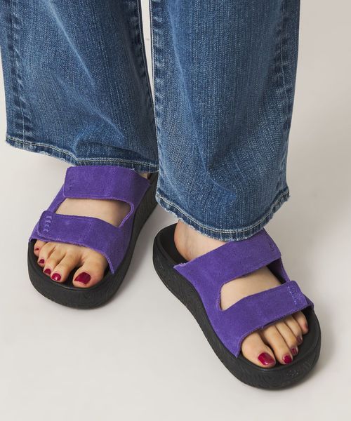 リラックス感のあるスライドタイプでさっと着脱しやすく、柔らかい印象の起毛素材やさりげなくアクセントになるカラーが魅力。