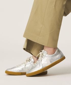 軽やかな雰囲気のシルバーカラーで足元に華やかさを添えてくれる一足です。
