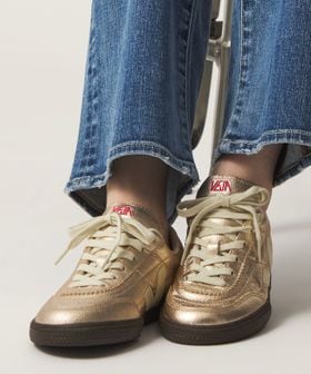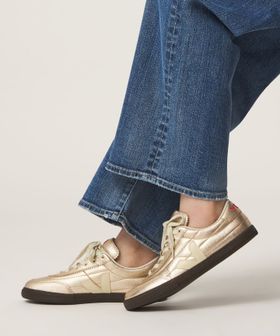 すっきりとしたフォルムでトレンド感もあり、ゴールドカラーが足元に華やかさと存在感をプラス。