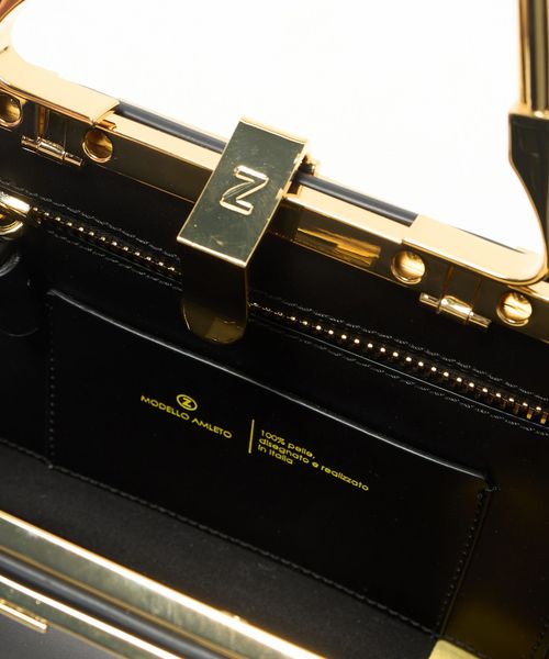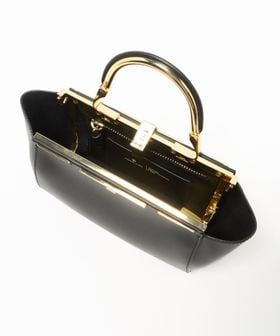 複数のパーツから組み上げられたハンドメイドの金具や、金具に刻まれたブランドロゴなど、細部にまでこだわりが詰まったバッグ。