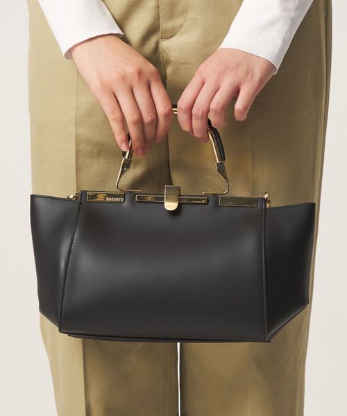 複数のパーツから組み上げられたハンドメイドの金具や、金具に刻まれたブランドロゴなど、細部にまでこだわりが詰まったバッグ。