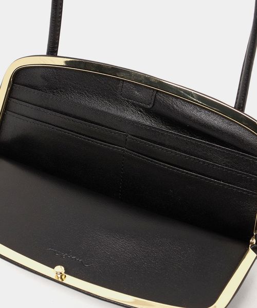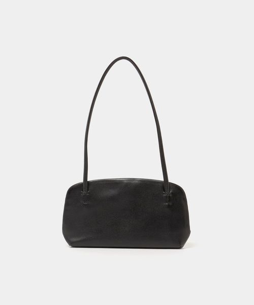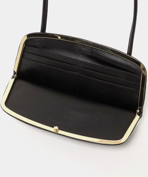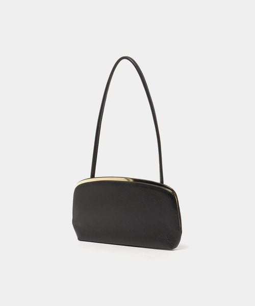 極力シンプルに削ぎ落とされたデザインで、ゴールドカラーのフレーム金具が際立つワンショルダーバッグ。