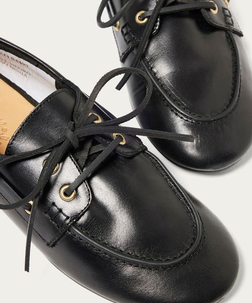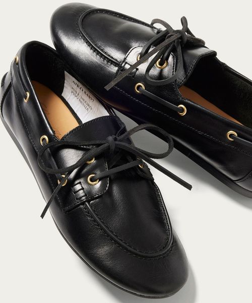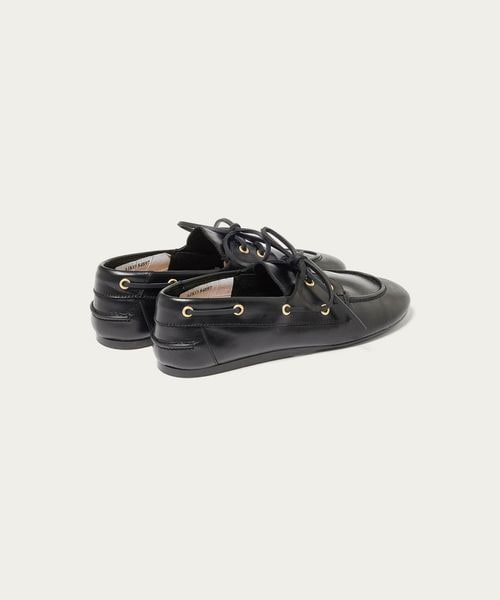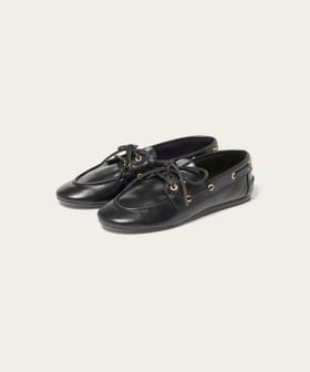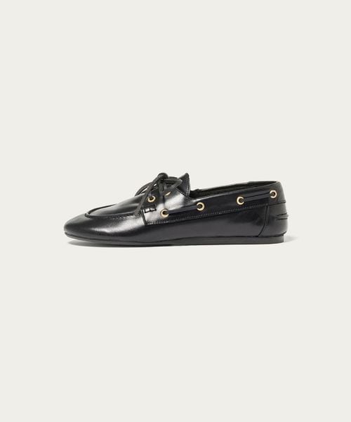 トレンド感のあるモカシンのようなデザインのフラットシューズ。