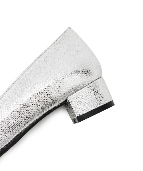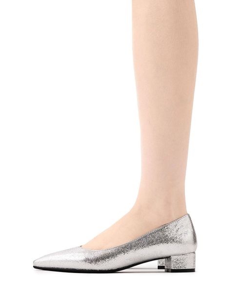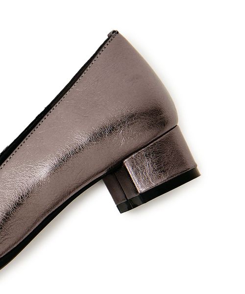 シンプルなプレーンパンプスは、オフィスでも履いていただけると思いますが、GDはあえて、トレンドのシボ感強めのメタリック材を選んでいるので、デニムの足元等に合わせてあげても、落ち着きすぎずいいと思います。