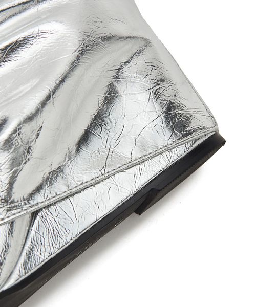 ブラックとダークブラウンはスムース素材、シルバーはツヤが強めの表面に粗く大きなシボが特徴のメタリック素材です。