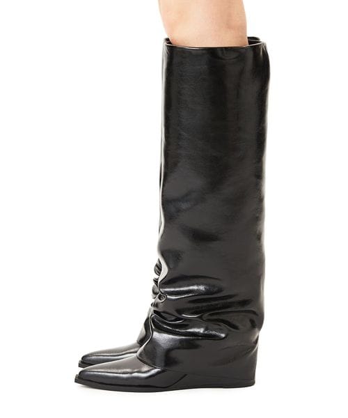 トゥ先はやや長めのポインテッドですっきり見え、筒周りのボリューム感とバランスを取っています。