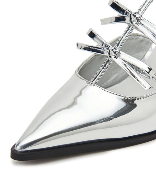 ヒールが薄いシルエットのため、タイトスカートやすっきりとしたボトムスと合わせても甘すぎないコーディネートに仕上がります。