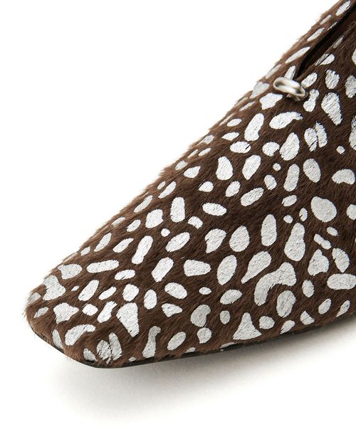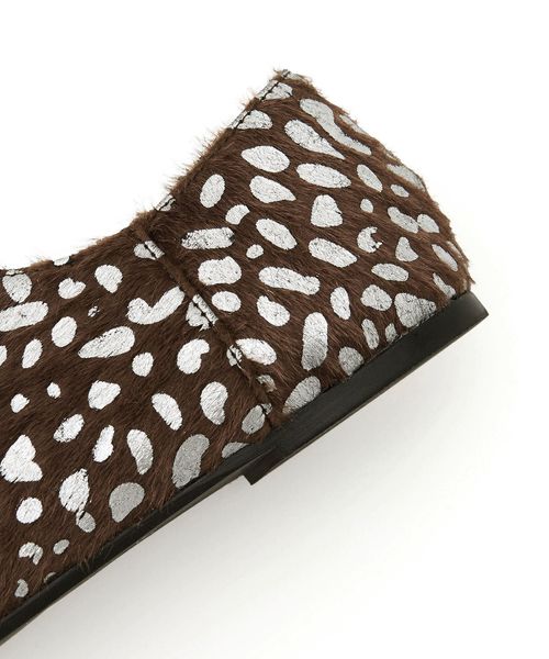その他1カラーは茶系のハラコ風生地にシルバーの斑柄プリントです。