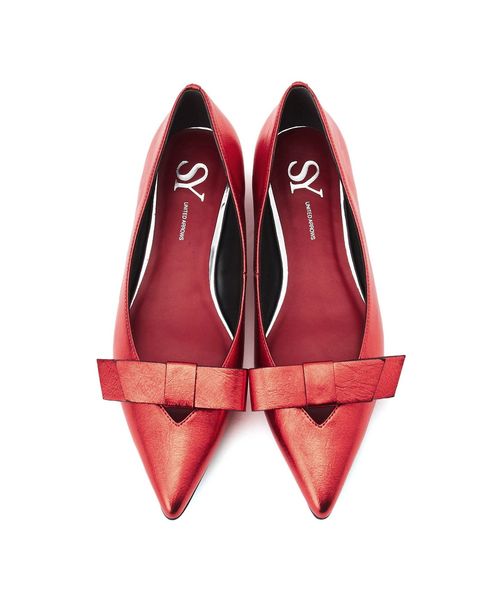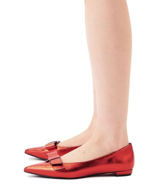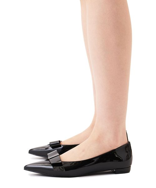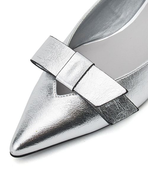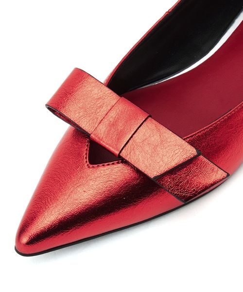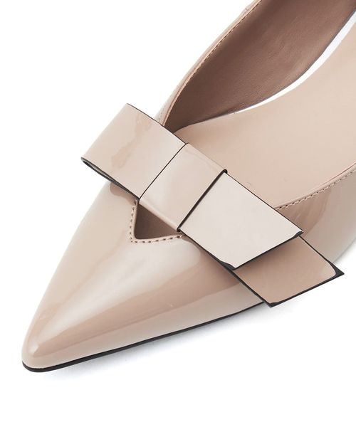 抜け感のあるVカットのアッパーに同色のリボンを施し、統一感を出しつつも、立体感をプラス。