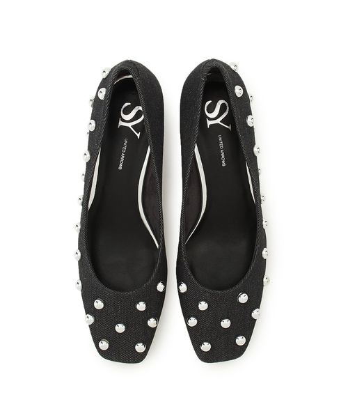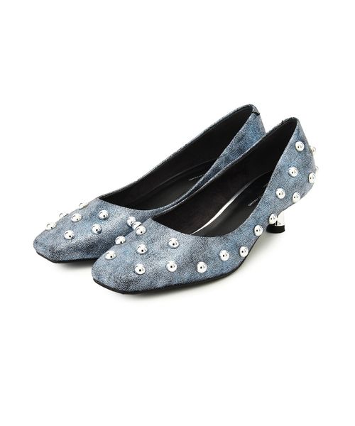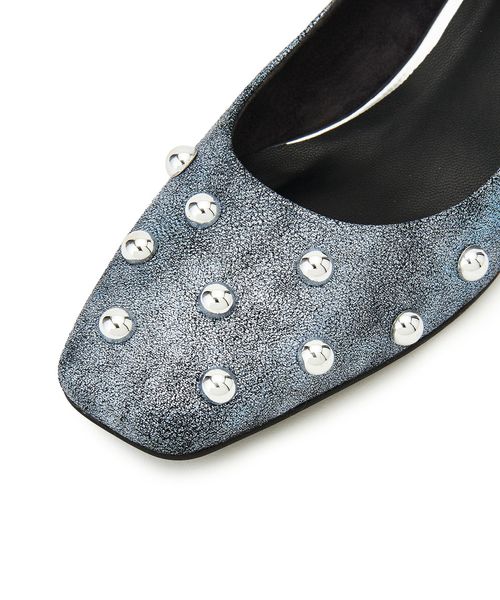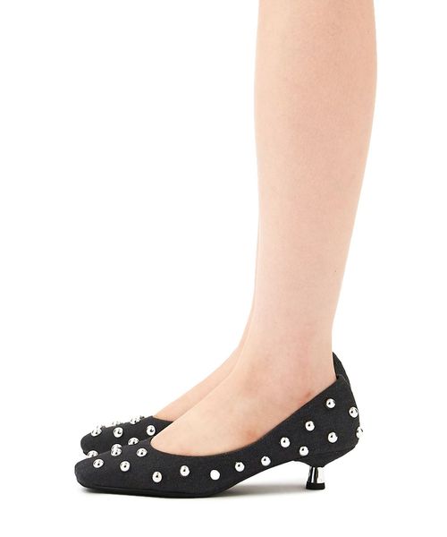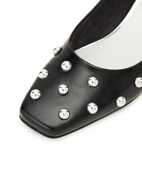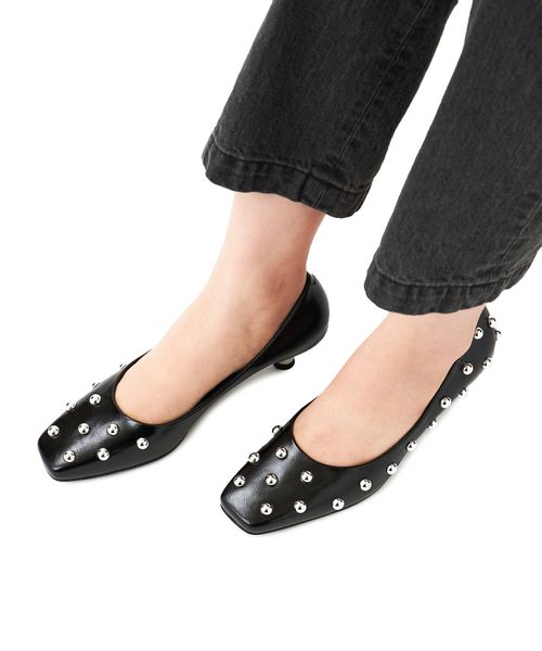 スタッズでアクセントをつけたモードなスクエアトゥパンプス