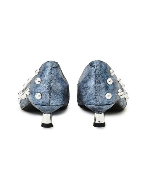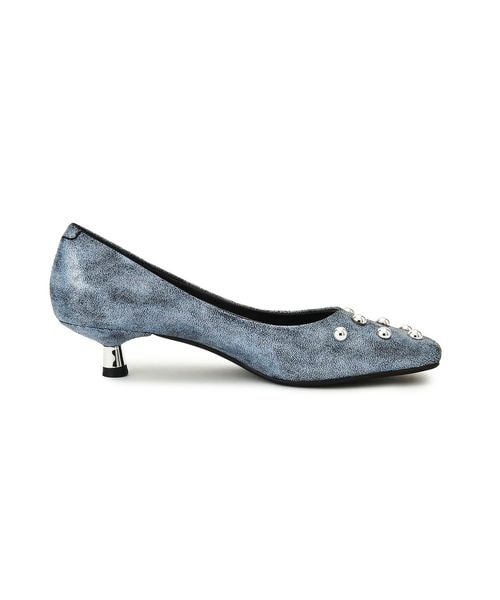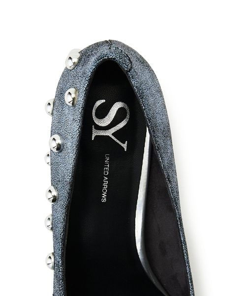 全色スタッズとメタルヒール部分をシルバーカラーで統一し、クールでモードな印象を演出。