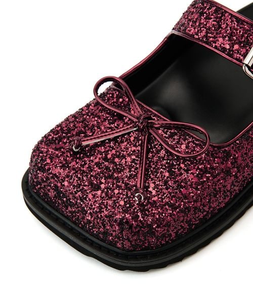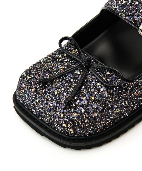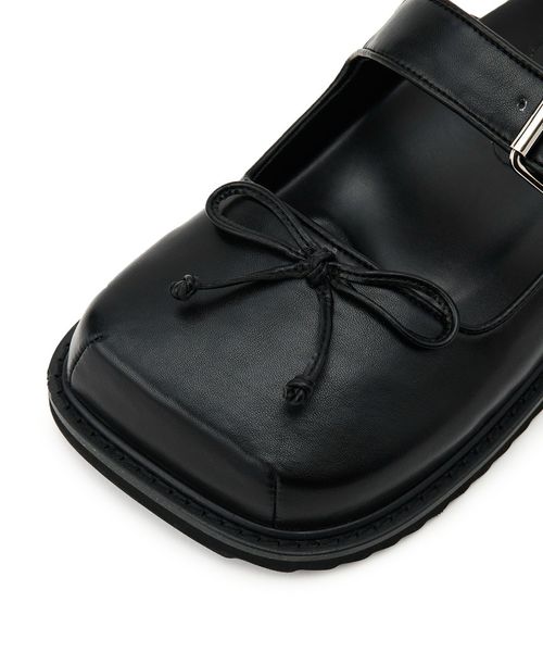 バレエシューズ風のアッパーデザインでトレンド感を演出し、つま先に存在感がありながら重くなりすぎないように本底は薄めに仕上げました。