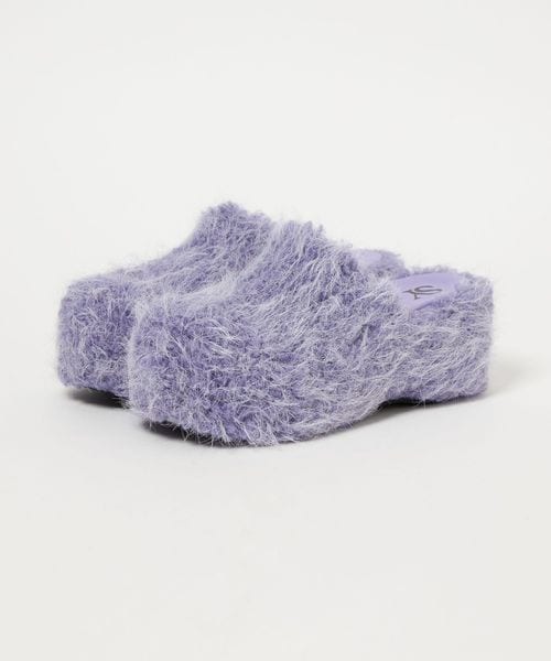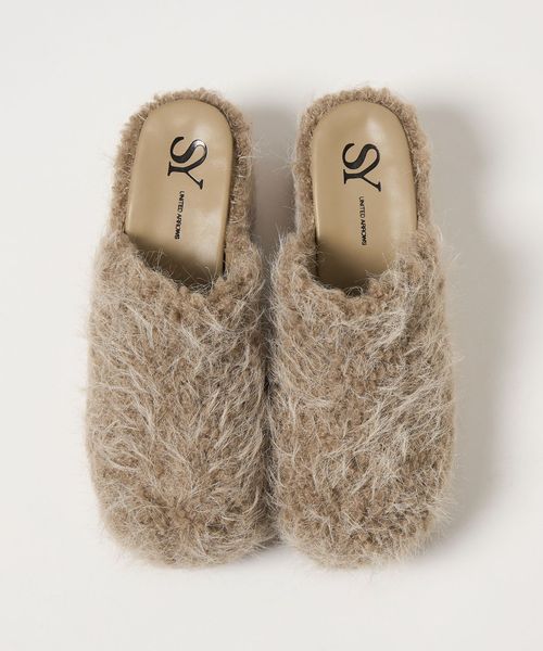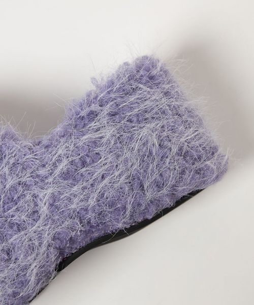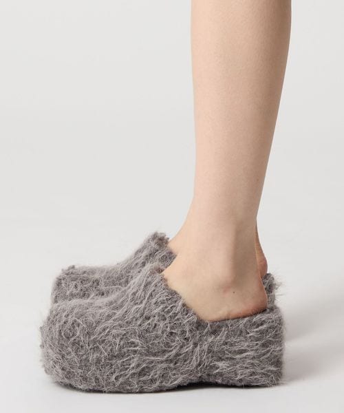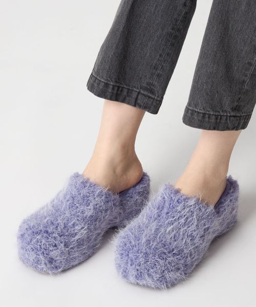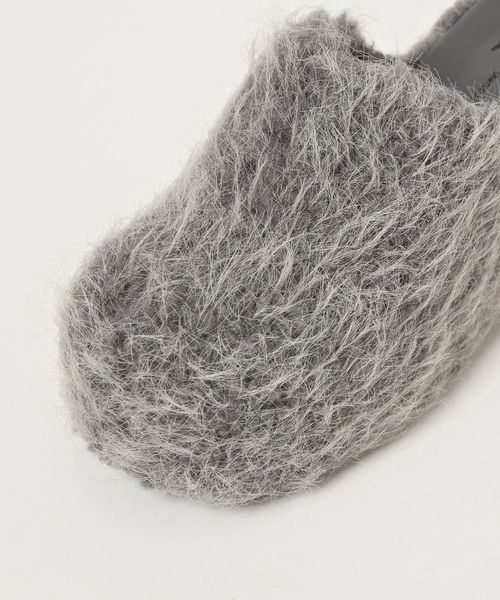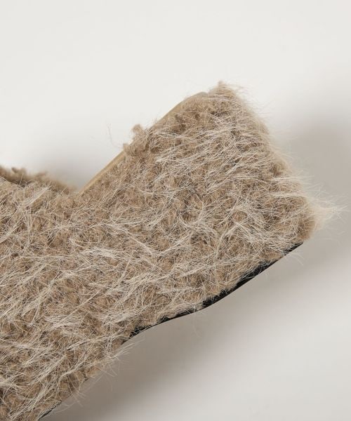 アッパーからヒールまでフェイクファーで覆った一体感あるデザインのミュール。