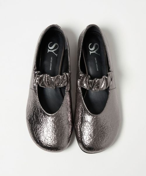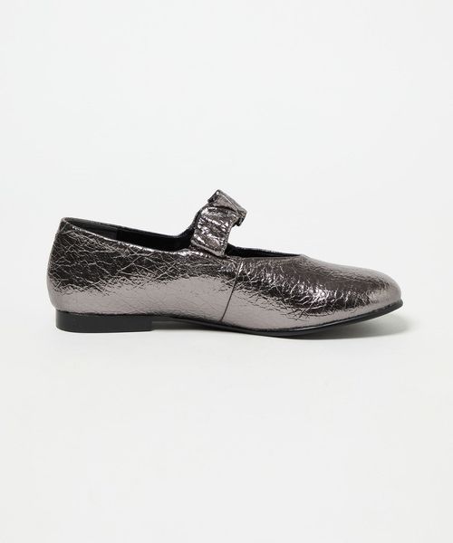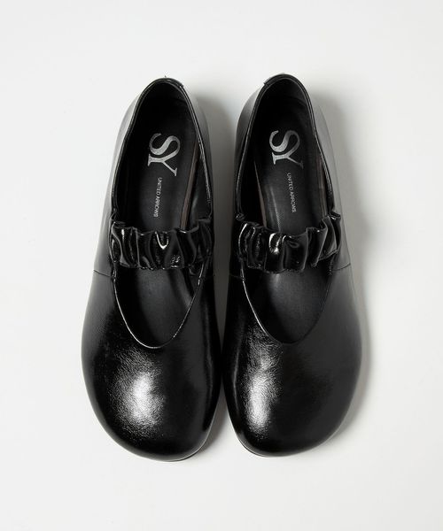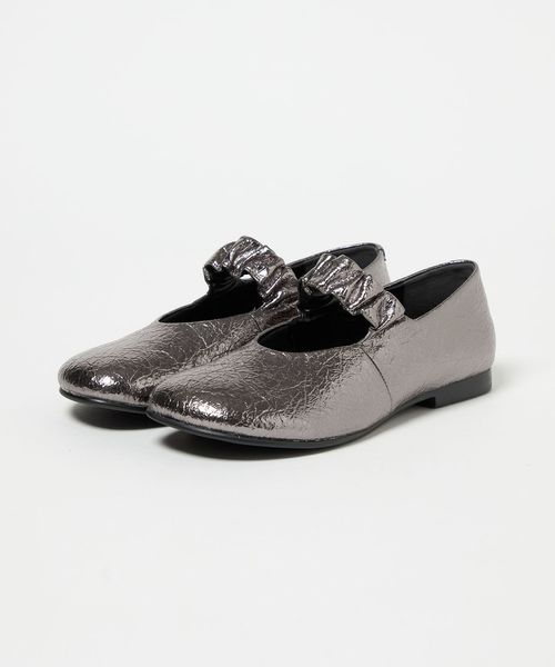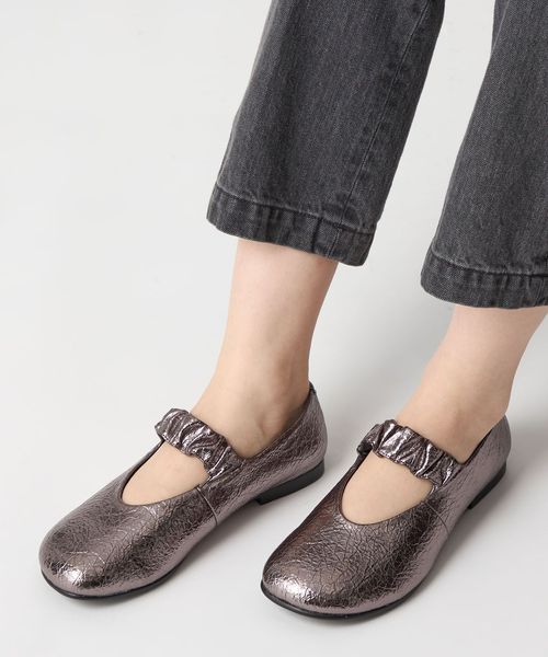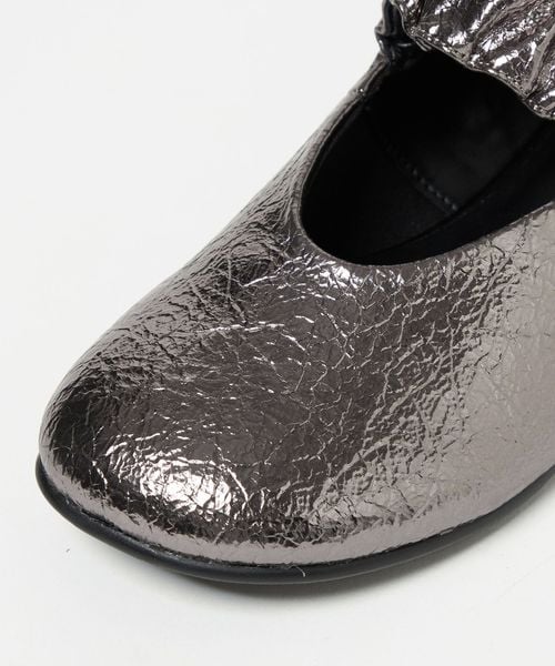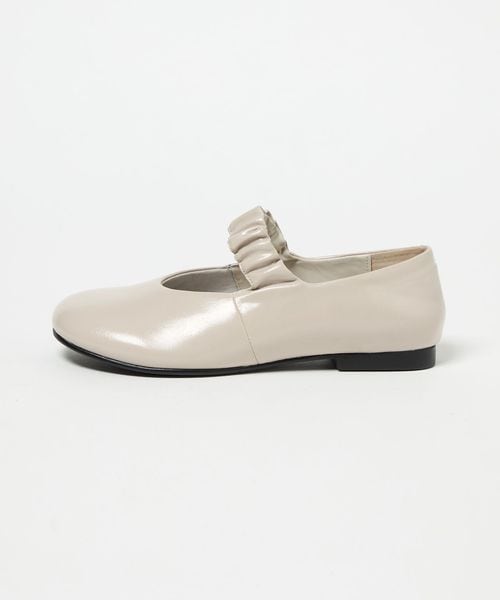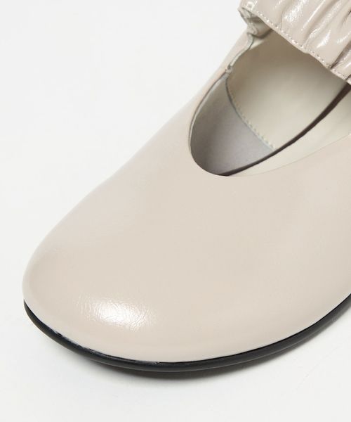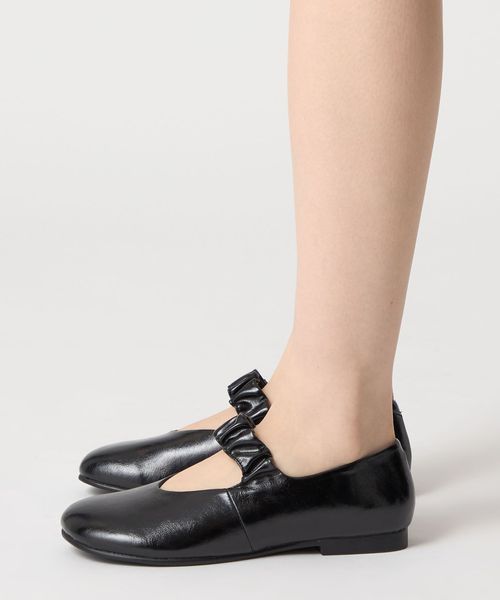 丸みのあるフォルムとシャーリングが上品なフラットシューズ