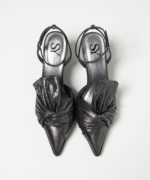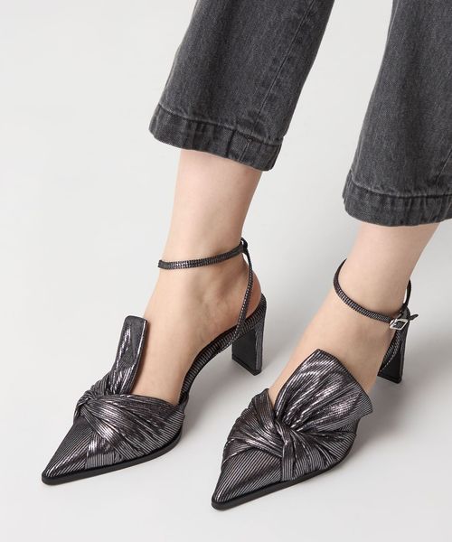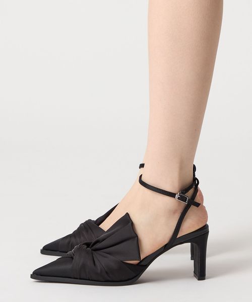 生地を捻ったようなリボンデザインが魅力のパンプス。
