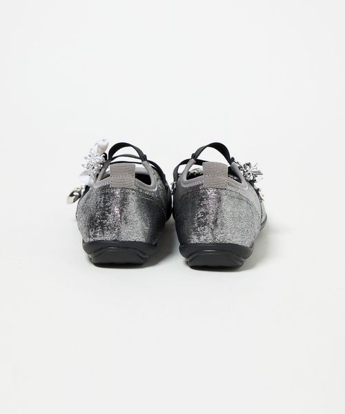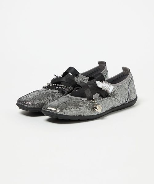 モードなデザインとフェミニンなチャームで甘辛ミックスに仕上げた一足です。