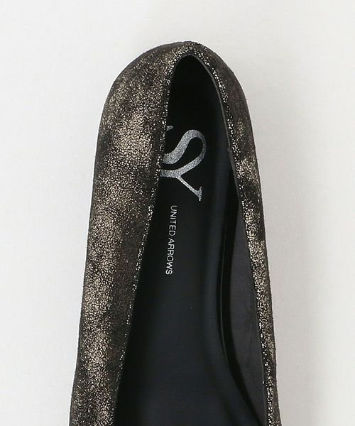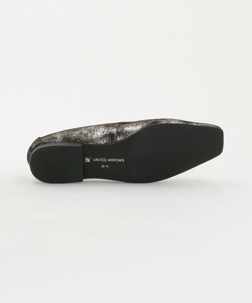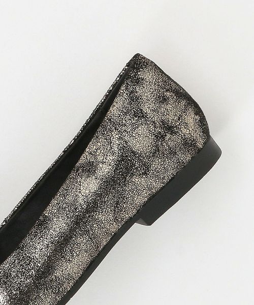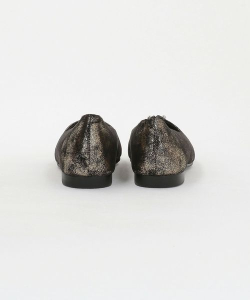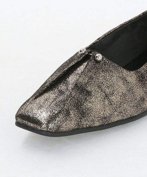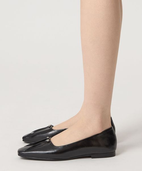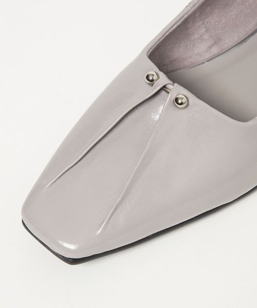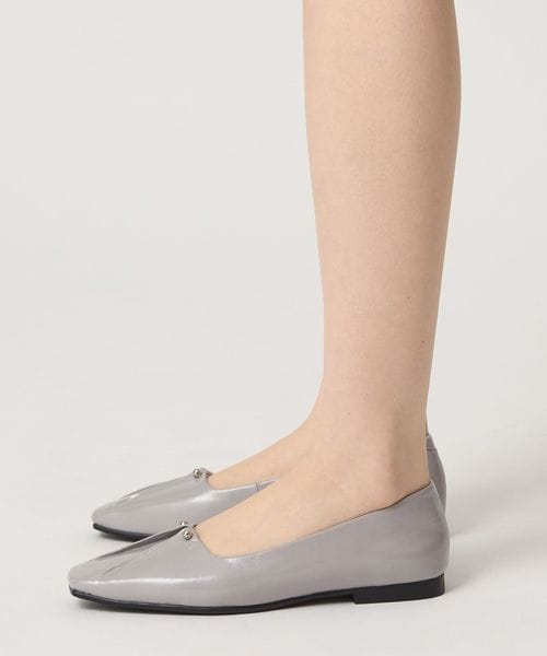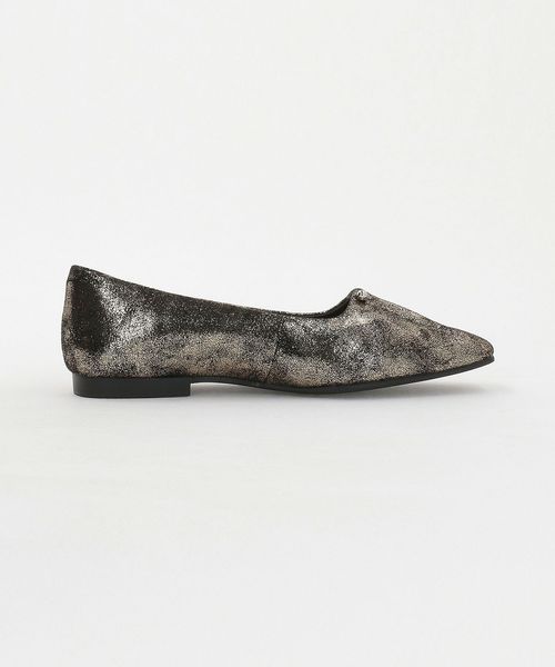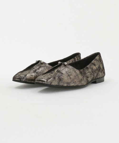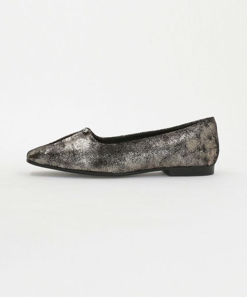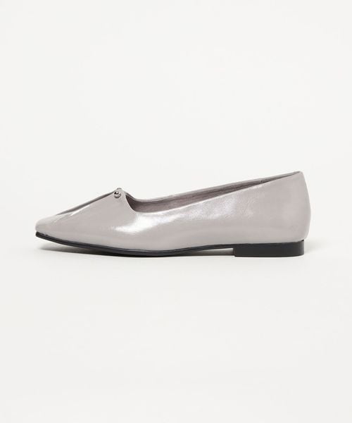 ボディピアスのようなシルバーカラーの金具がさりげなく光るフラットシューズ。
