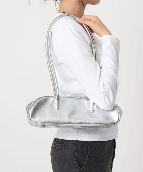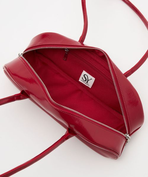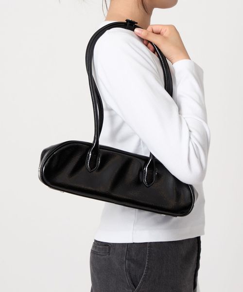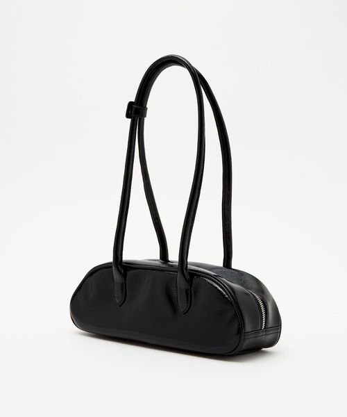 横に細長いフォルムと長めのハンドルがトレンド感あるボストンバッグ。