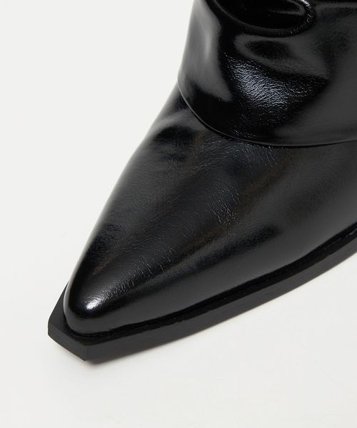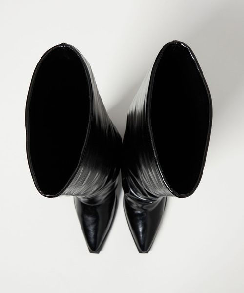 トゥ先はやや長めのポインテッドですっきり見え、筒周りのボリューム感とバランスを取った一足です。