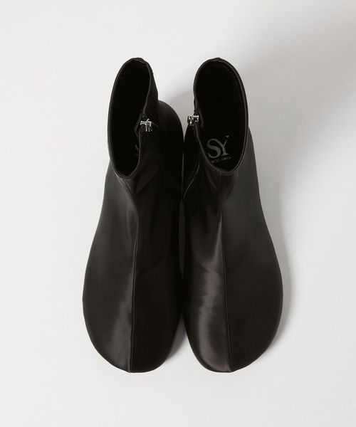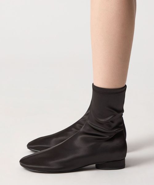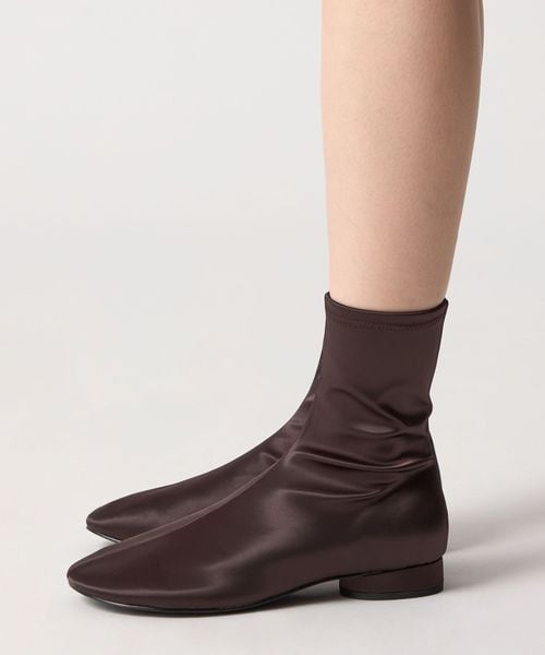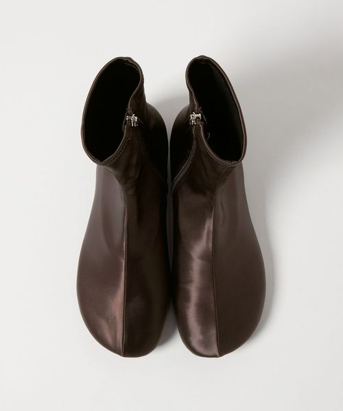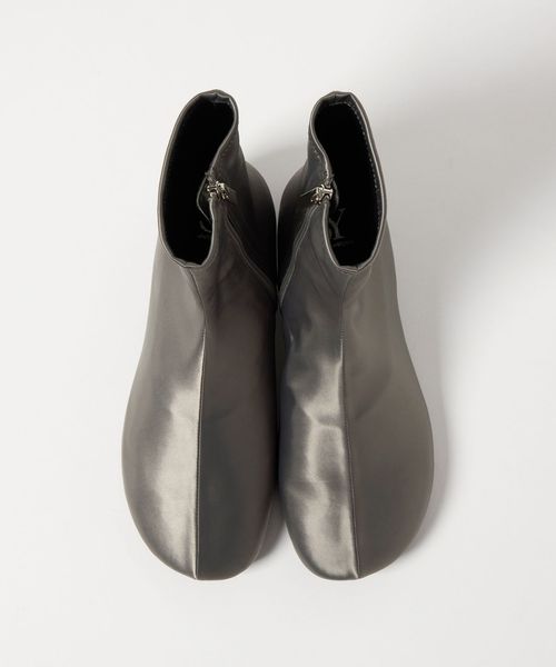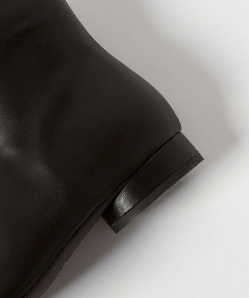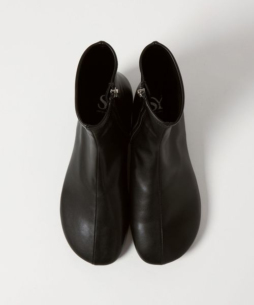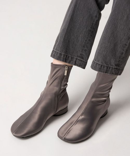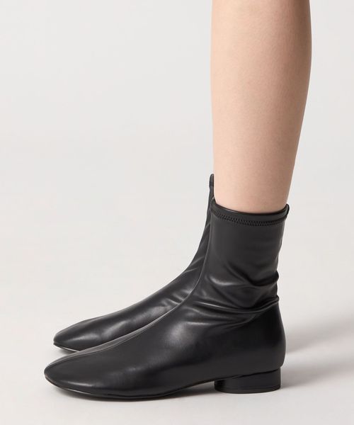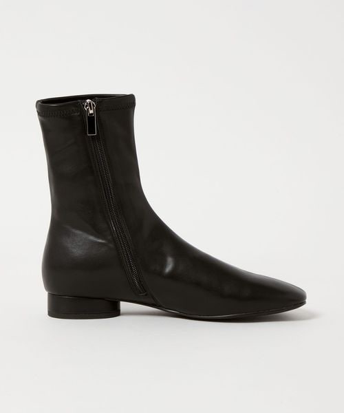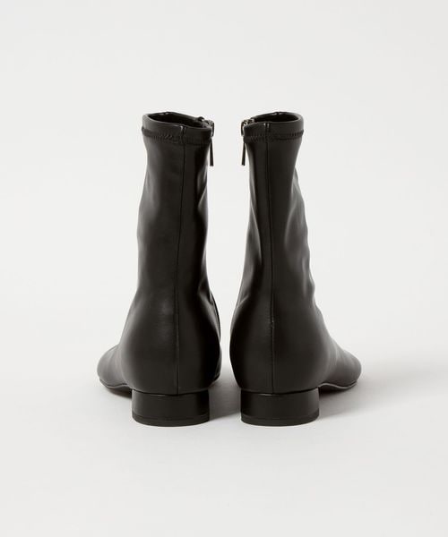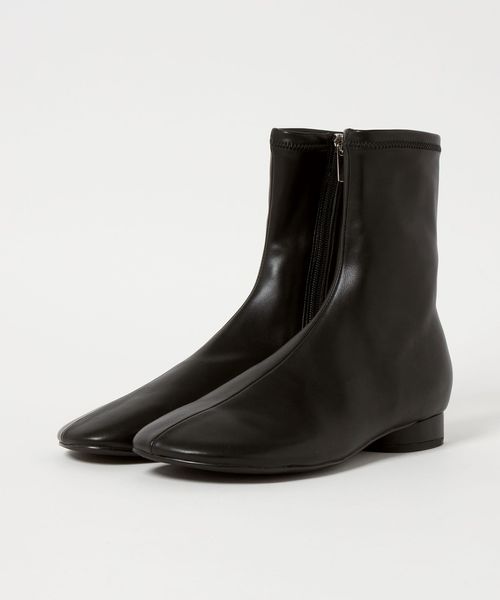 オブリークトゥが特徴的なフィット感のあるショートブーツ。