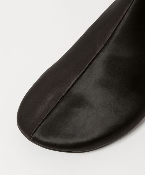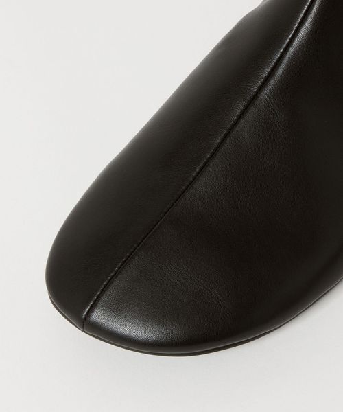 丸みのあるトゥ先が柔らかな印象を添えつつ、足首を絞ったタイトなシルエットでモードさをプラス。