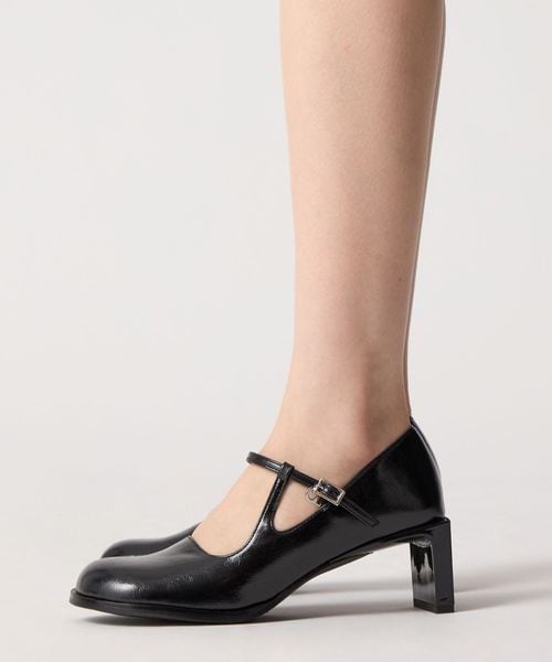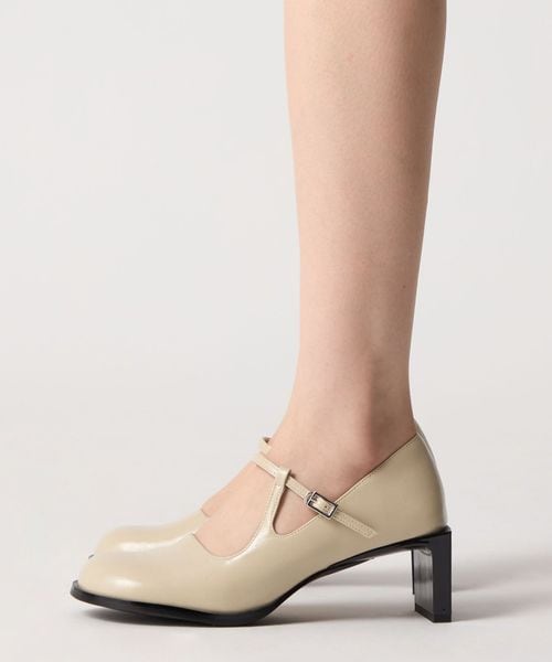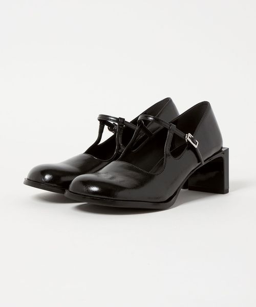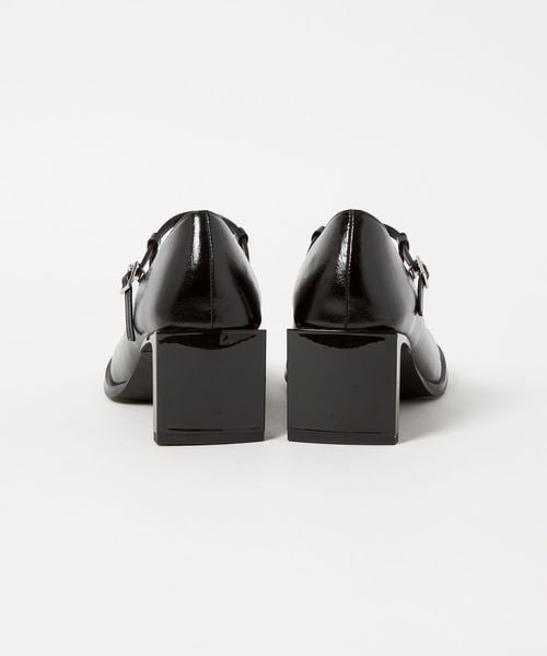 オブリークなトゥとダブルストラップのデザインを掛け合わせたパンプス。
