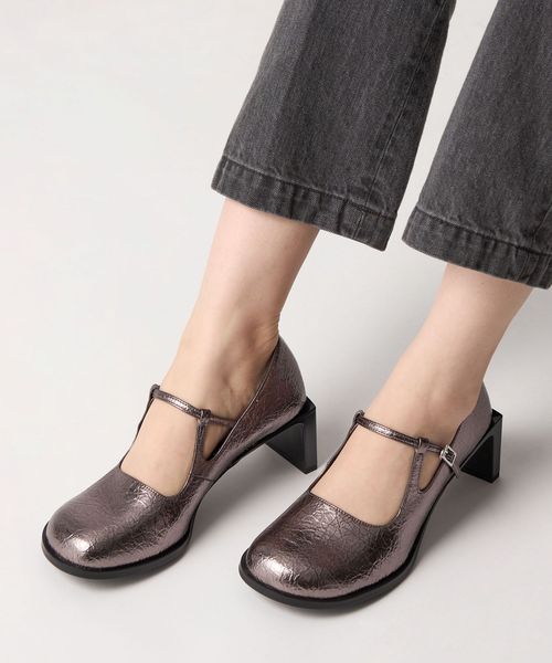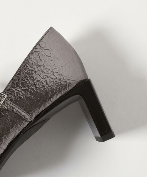 ころんとしたシルエットに、エッジの効いたヒールを合わせることでバランスを取った一足です。