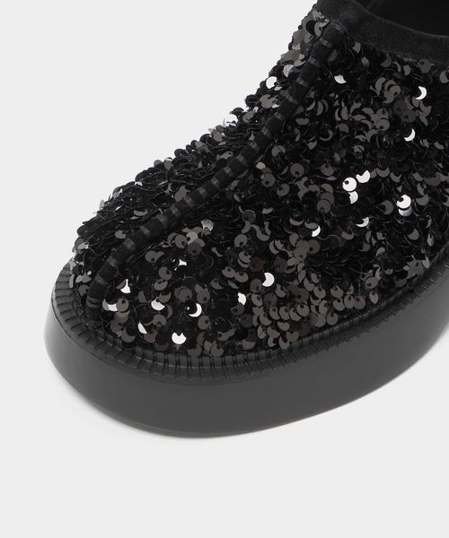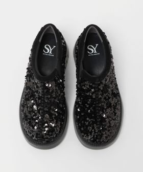 煌びやかなスパンコールが目を惹く、オブリークトゥのスリッポン。