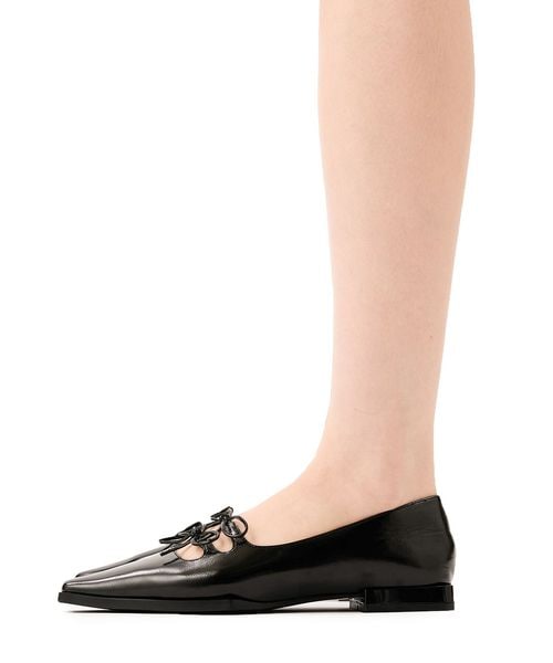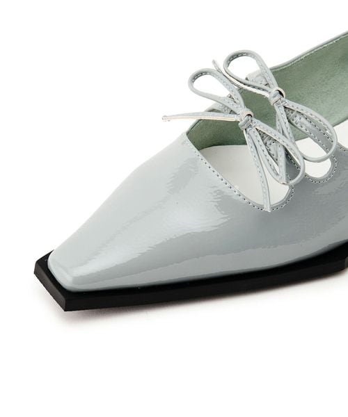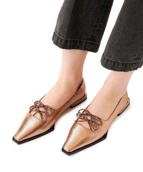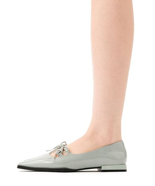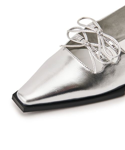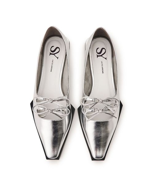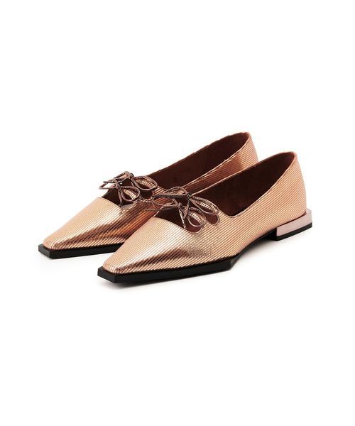 ダブルのリボンが印象的なフラットシューズ。