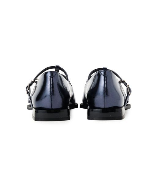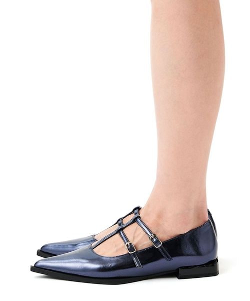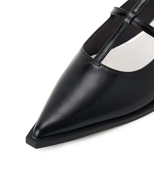 トレンドのダブルTストラップを採用したフラットシューズ。
