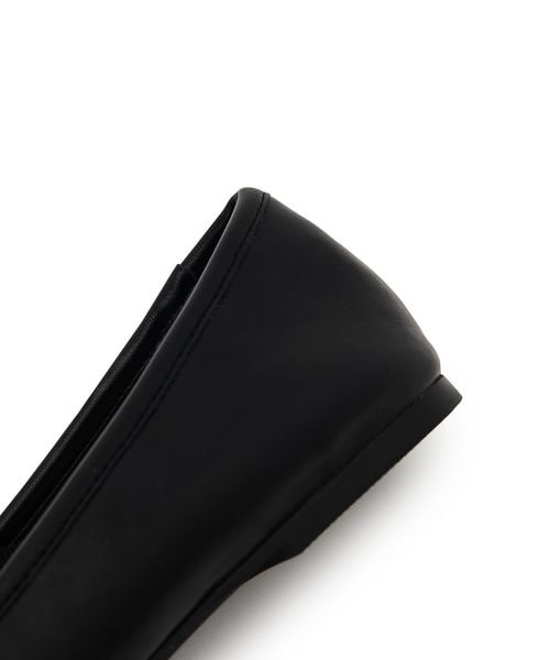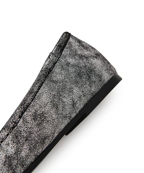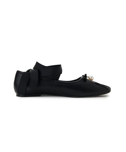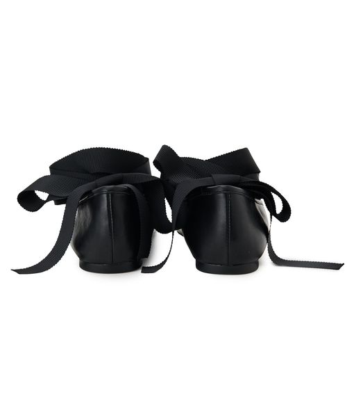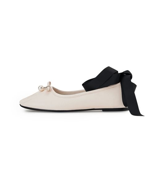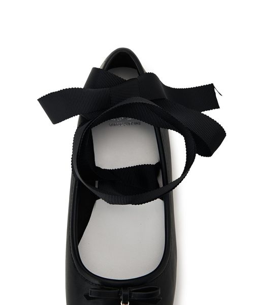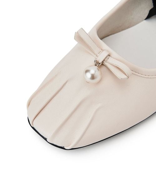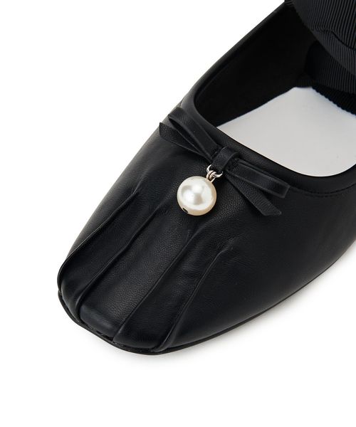 シンプルなデザインにリボンとチャーム、トゥタックがアクセントとなり、足元に優雅な印象をプラス。