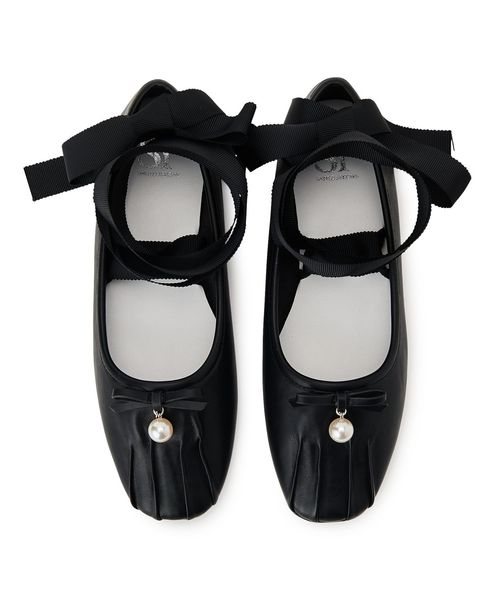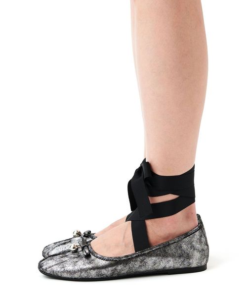 リボンにチャームがついた、フェミニンで華やかなバレエシューズ。