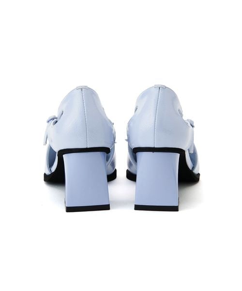 ブラックとライトブルーはシボ感のあるエナメル素材。