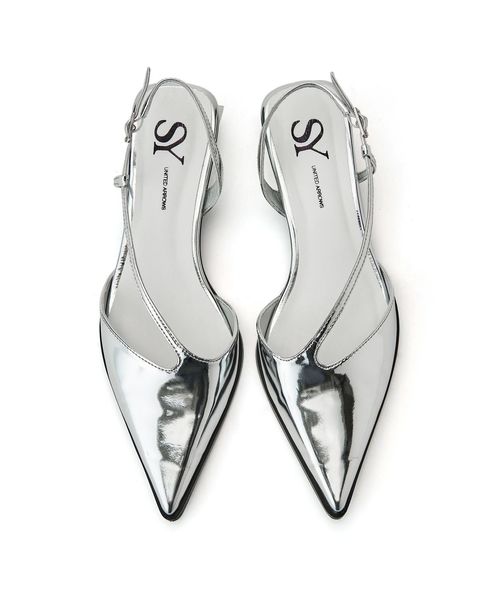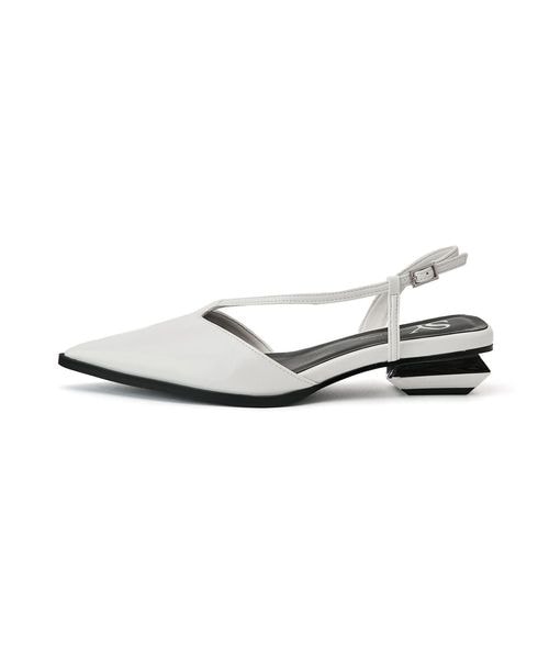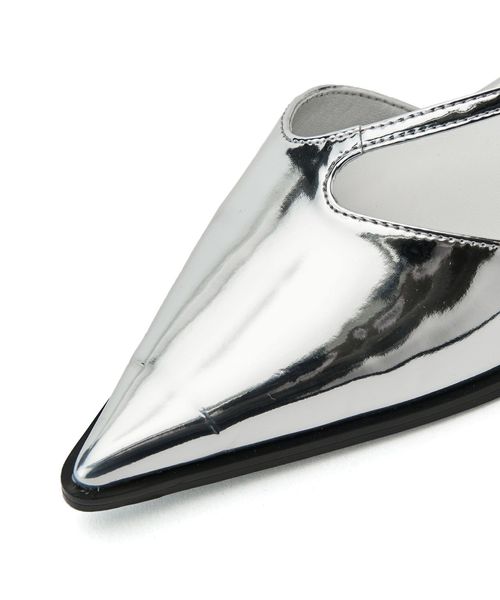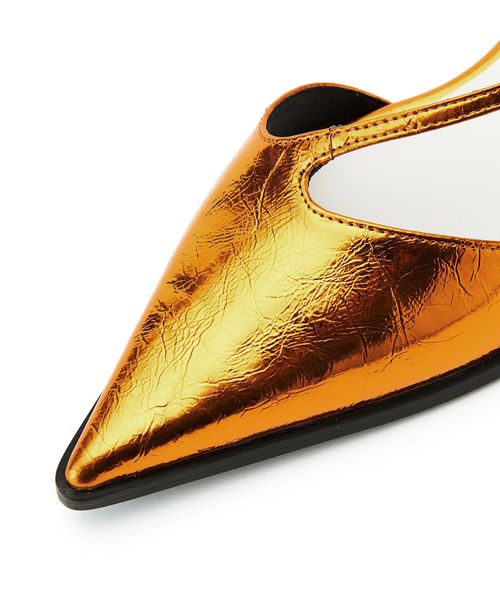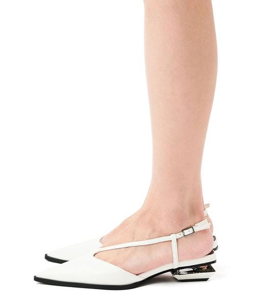 甲に斜めにかかったストラップが足元を美しく飾り、シャープな印象のフラットシューズ。