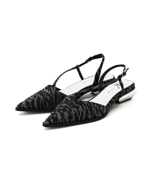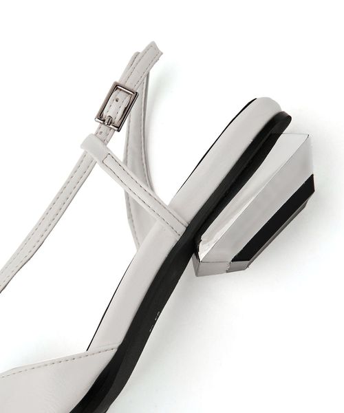ヒールには構築的なデザインを取り入れ、バックスタイルも映える一足。