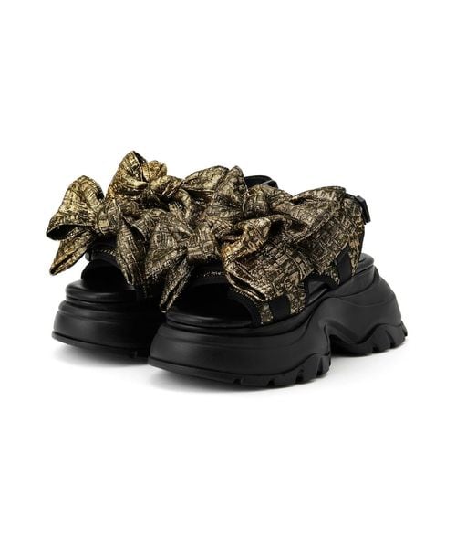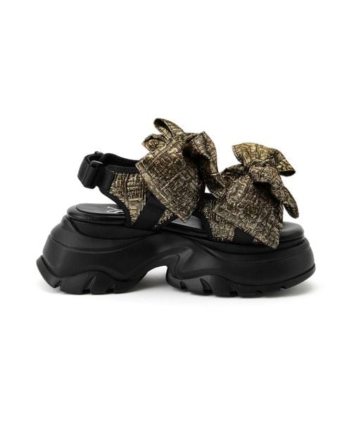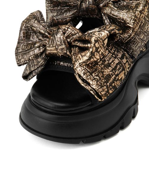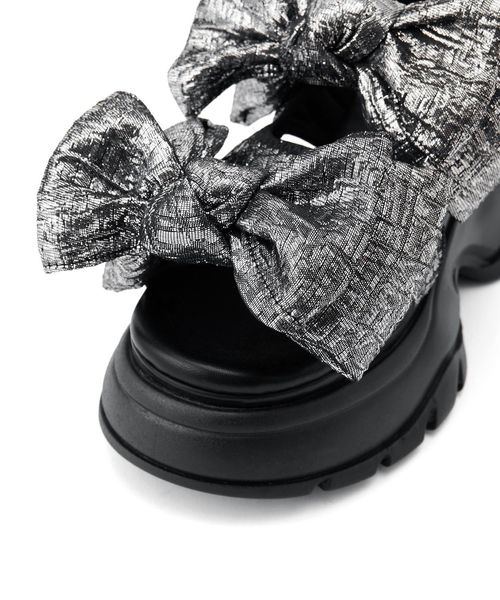 ボリューミーなリボンと厚底ソールが目をひくサンダル