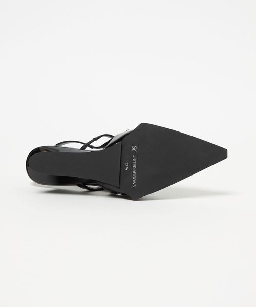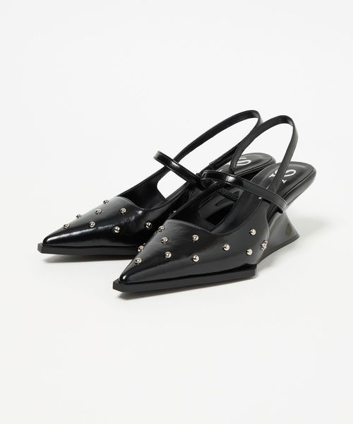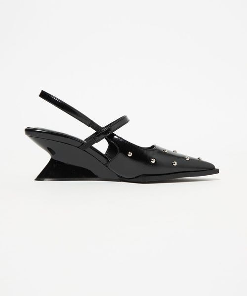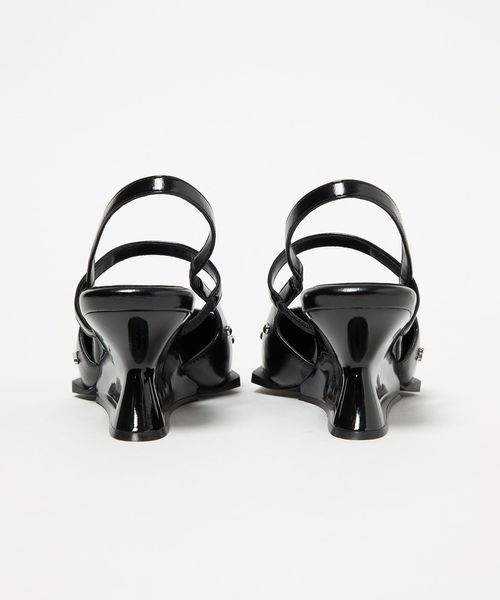 くびれたシャープな変形ウェッジヒールと存在感のある角ばった底周りがモード感を演出。
