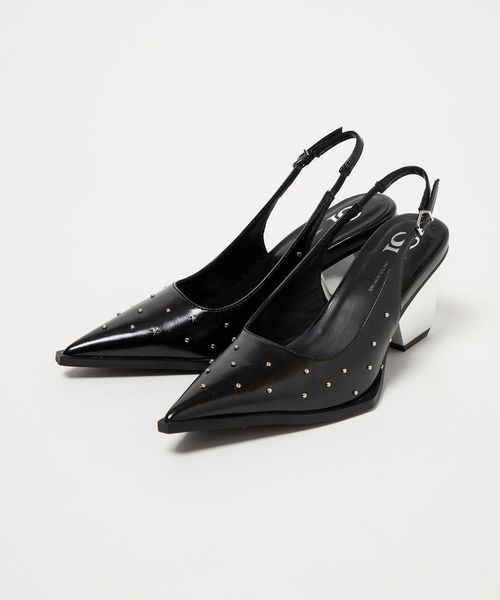 ヒールとスタッズは光沢感のあるシルバーカラーです。